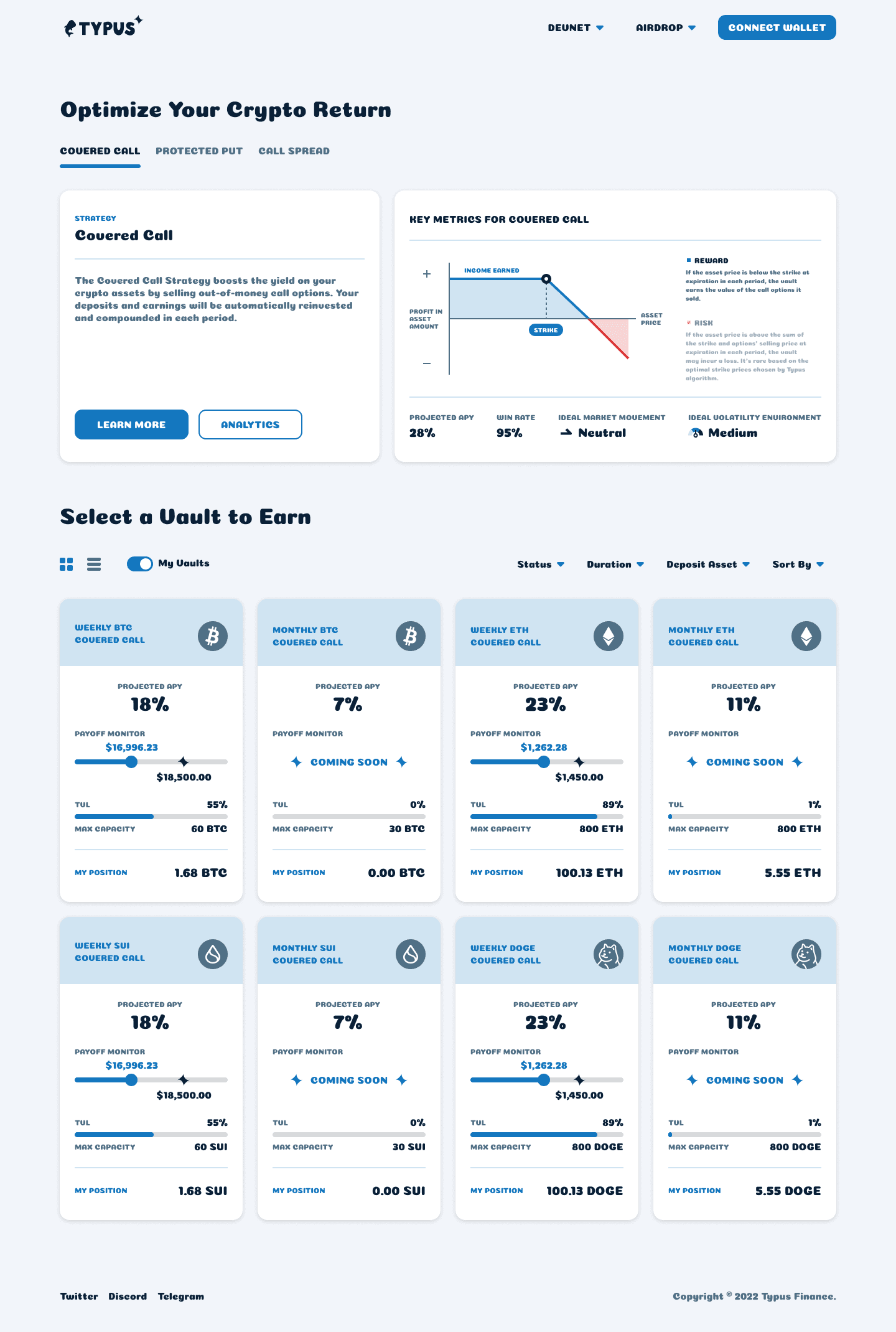 Typus Finance is a DeFi platform for trading options on blockchain, founded in 2022. I joined as founding designer when the team was shipping features rapidly with inconsistent, unfinished design. To tackle this problem, I took the initiative to identify design gaps and build foundations from scratch while keeping pace with fast product development and scaling.
